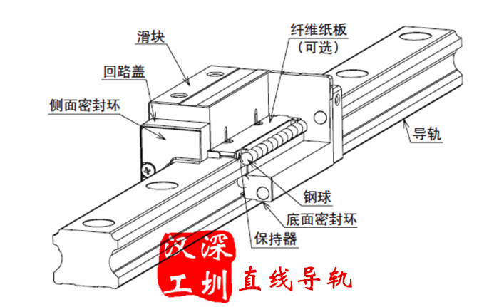 直線導(dǎo)軌系為一種滾動(dòng)導(dǎo)引,由鋼珠在滑塊與導(dǎo)軌之間作無(wú)限滾動(dòng)循環(huán),負(fù)載平臺(tái)能沿著導(dǎo)軌輕易地以高精度作線性運(yùn)動(dòng)。
