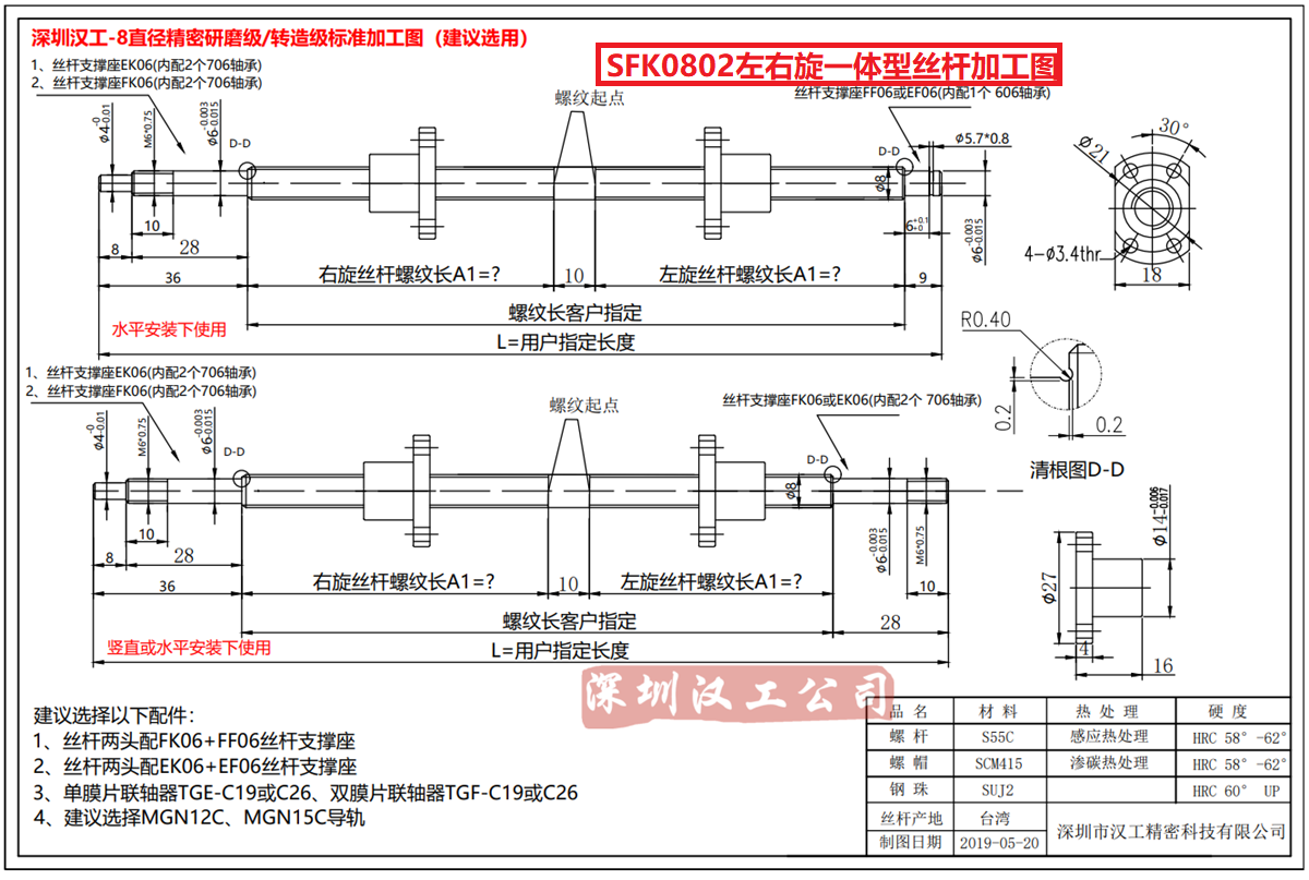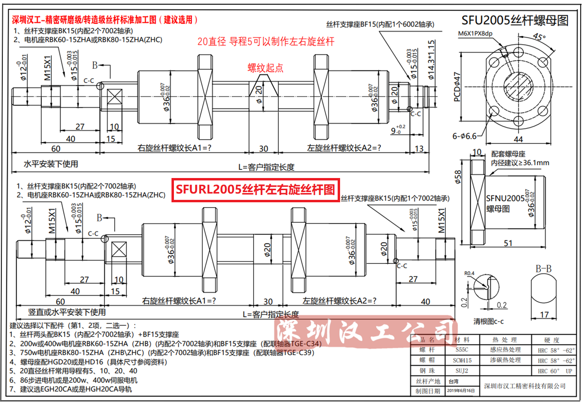 20直徑左右旋絲桿:SFU2005 、SFS2020、SFY2020
