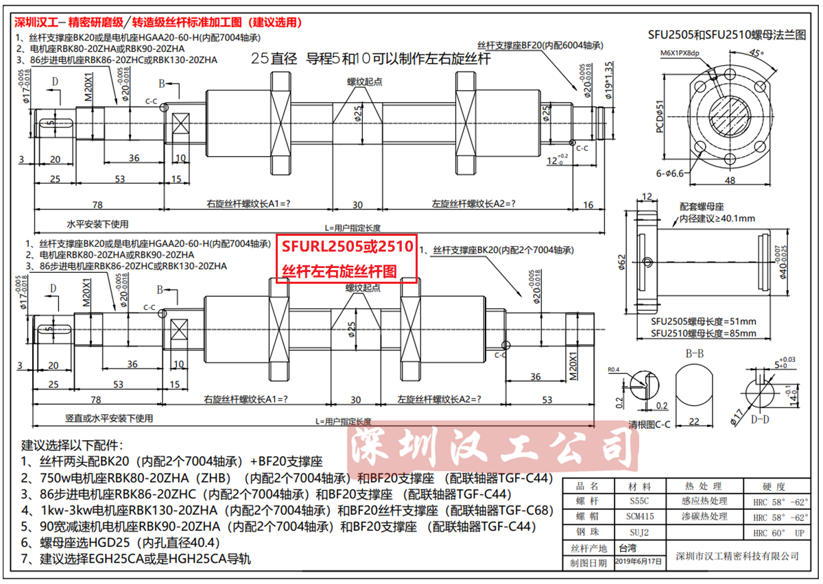 25直徑左右旋絲桿:SFU2505、SFU2510