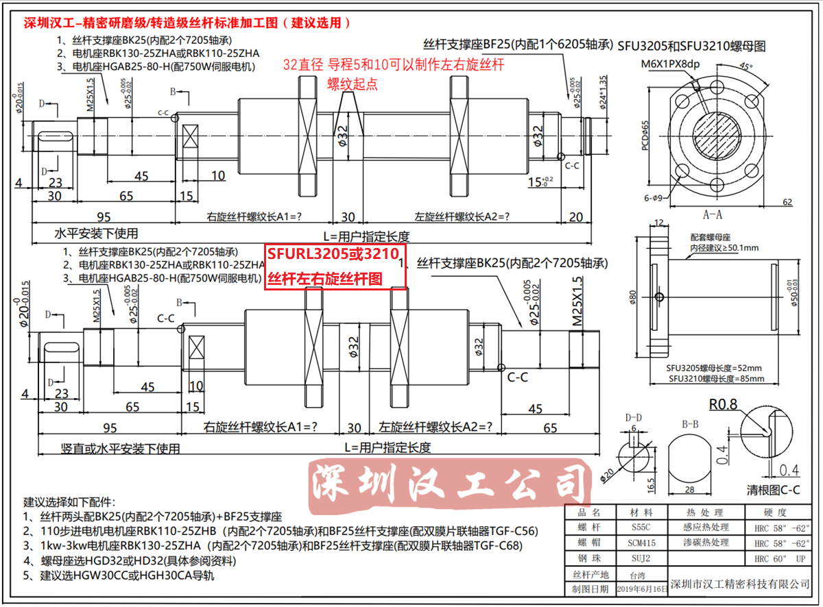 32直徑左右旋絲桿:SFU3205、SFU3210,SFY3232